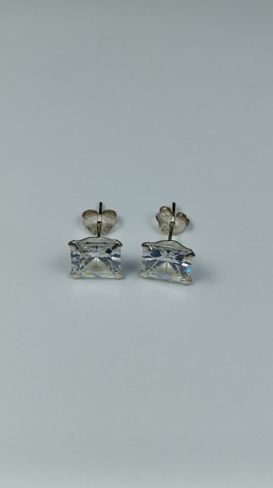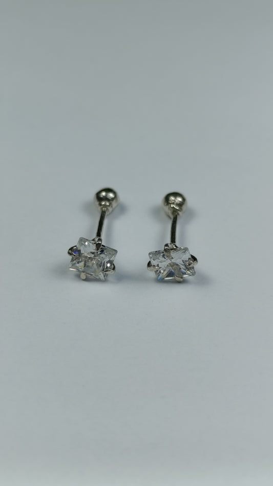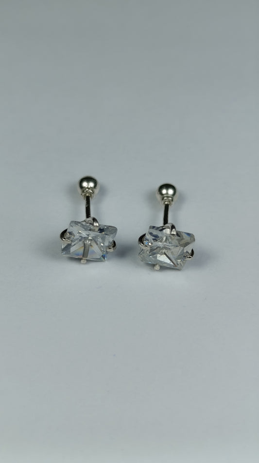 Aretes Plata Chispa Blanca Cuadrada Are 445