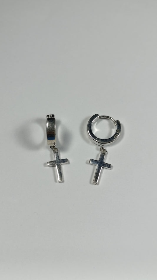 Aretes Plata Argolla Huggies Cruz Colgante Are 463