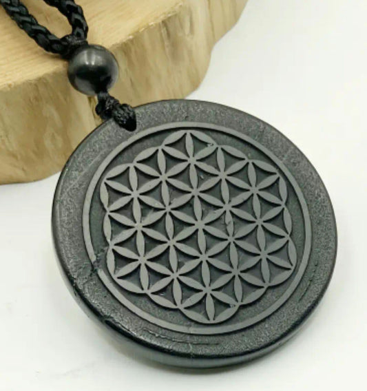 Collar Shungita EMF Flor de vida 3.5x3.5 cm 2509 Col 1319